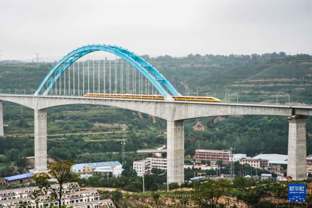 9月11日,联调联试综合检测列车驶过位于陕西省铜川市的西延高铁王家河特大桥。