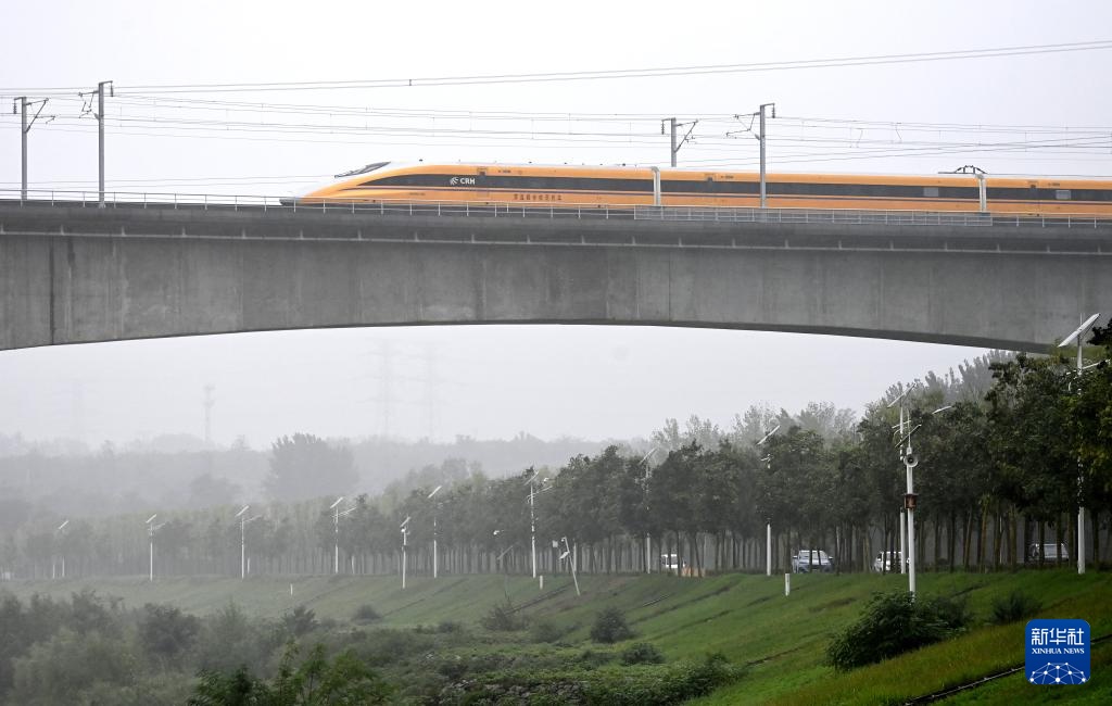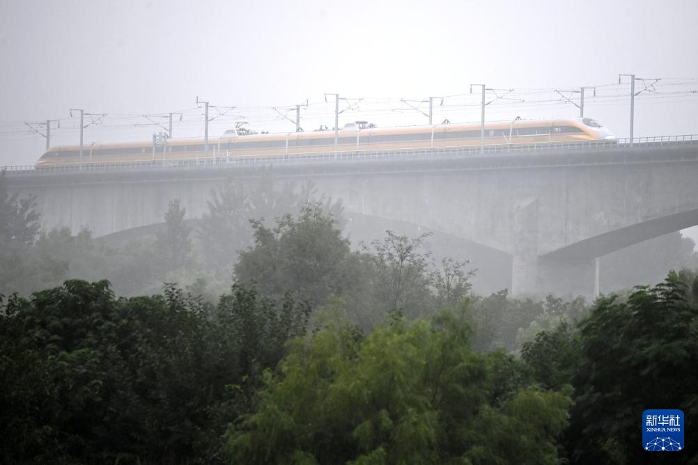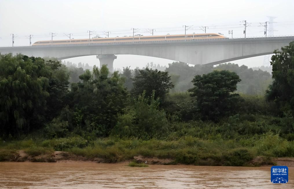 9月11日,联调联试综合检测列车驶过位于陕西省西安市的西延高铁渭河特大桥。