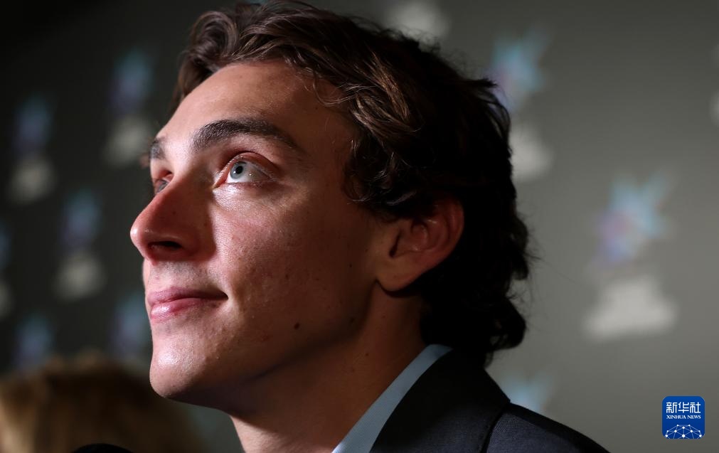 9月11日,瑞典撑杆跳选手杜普兰蒂斯在活动前。