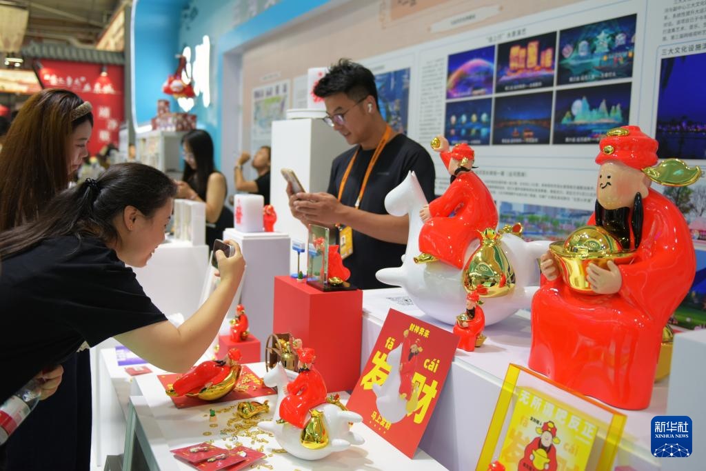 9月12日,参观者在文旅服务专题展区拍摄文创产品。
