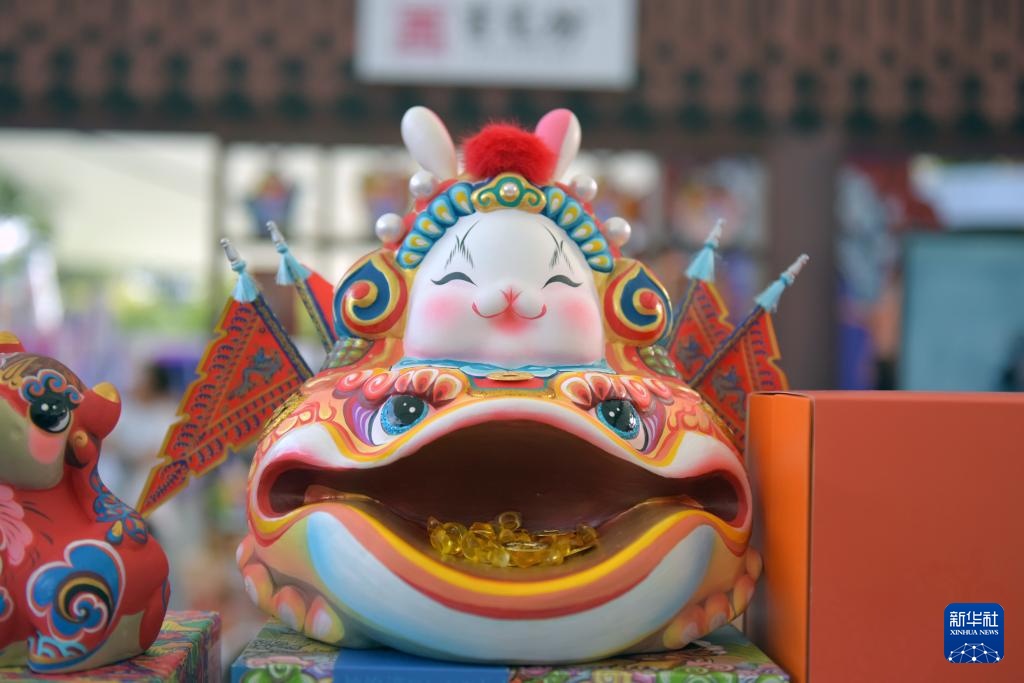 这是9月12日在文旅服务专题展区拍摄的北京兔爷文创产品。