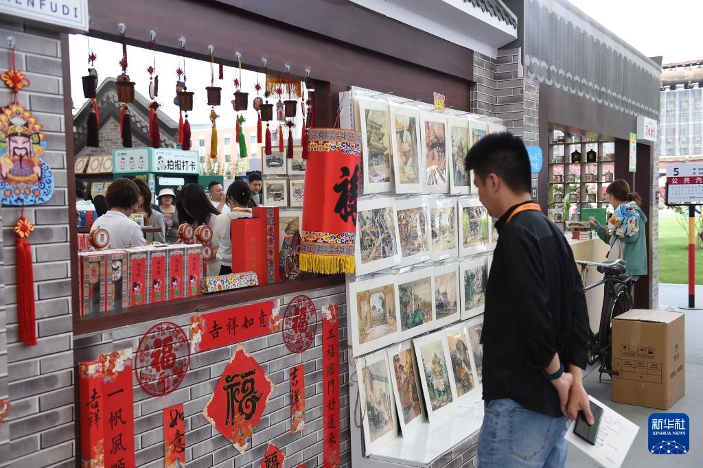 9月12日,参观者在文旅服务专题展区“北京礼物”展厅选购文创产品。