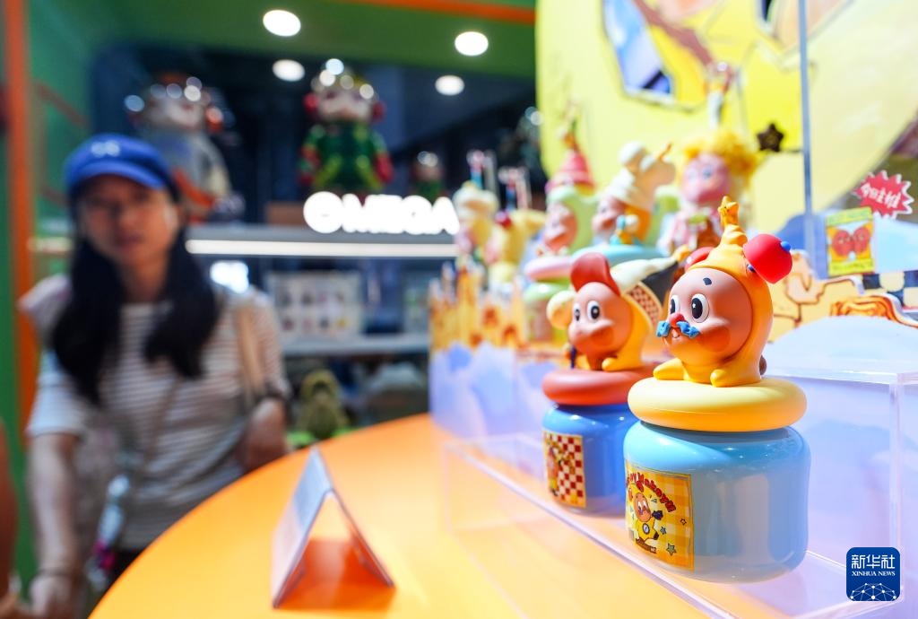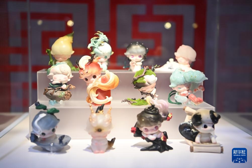 这是9月11日在文旅服务专题展区拍摄的泡泡玛特传统文化系列手办。