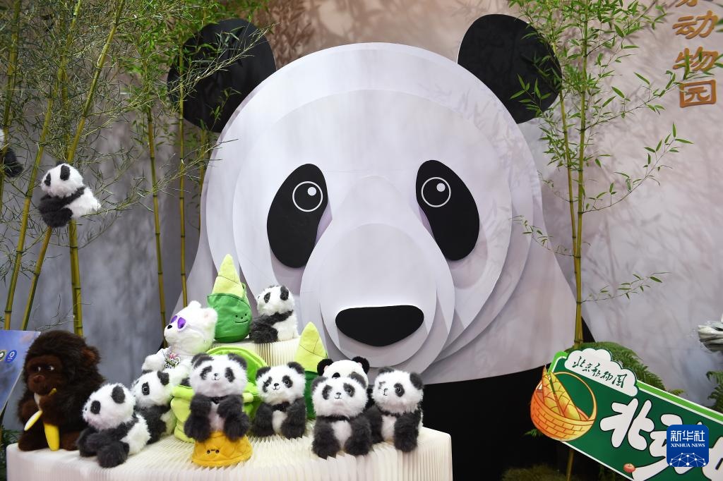 这是9月12日在文旅服务专题展区北京市公园管理中心展位拍摄的熊猫主题文创产品。