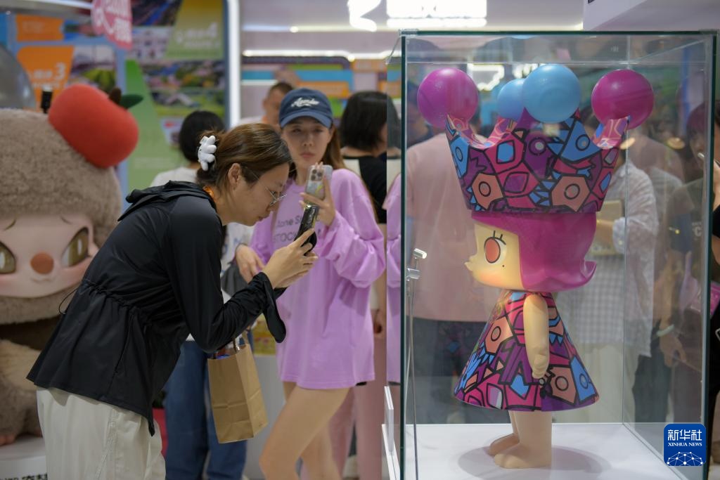 9月11日,参观者在文旅服务专题展区拍摄泡泡玛特的Molly玩偶。