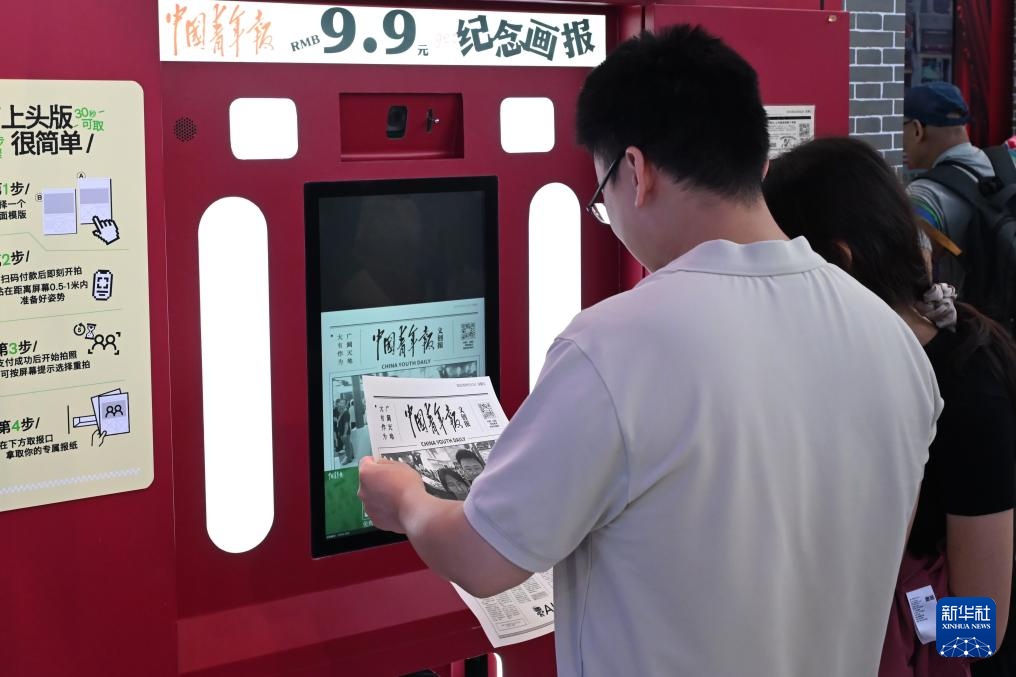 9月12日,参观者在文旅服务专题展区制作纪念画报。