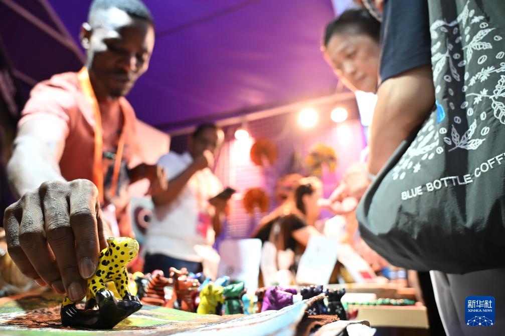 这是9月12日在文旅服务专题展区卢旺达共和国驻华大使馆展位上拍摄的石刻文创产品。