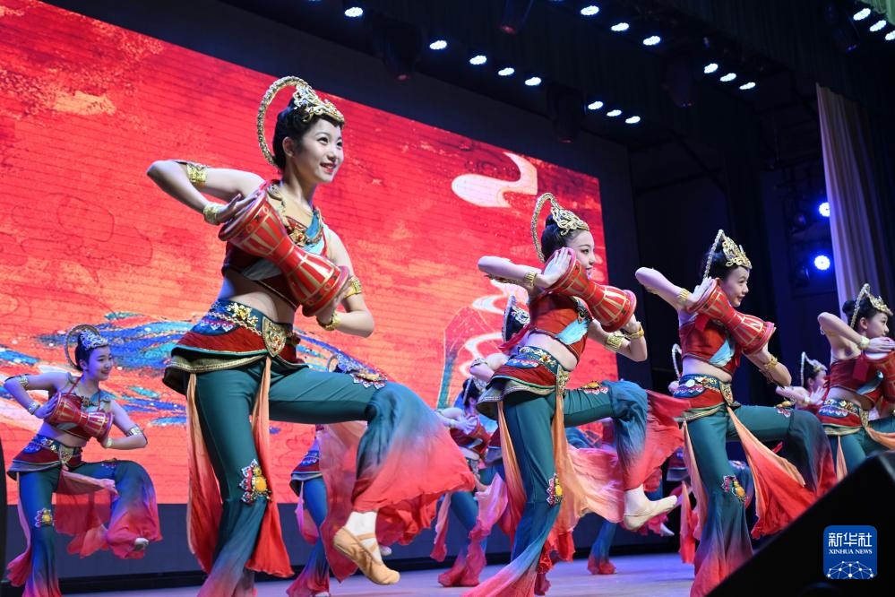 9月12日,北京师范大学附属中学金帆舞蹈团在大会上表演舞蹈《又见敦煌》。