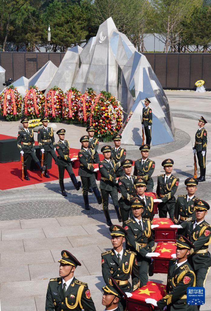9月13日,礼兵护送志愿军烈士棺椁进入沈阳抗美援朝烈士陵园安葬地宫。