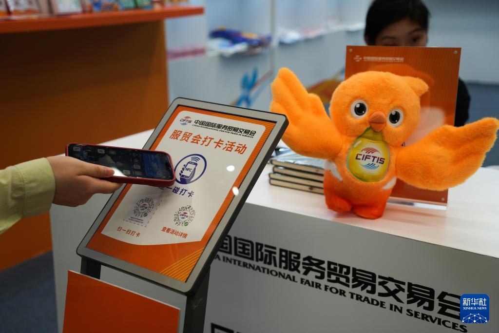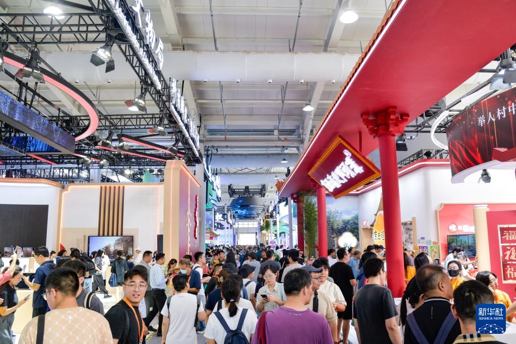 9月13日,人们在北京首钢园2025年服贸会文旅服务展区参观。