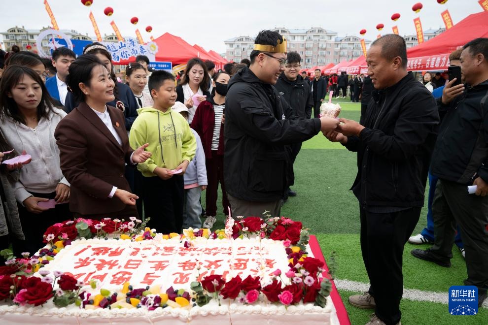 9月13日,在漠河文化旅游学院,新生吴胜达将生日蛋糕送给父亲。吴胜达的生日恰逢开学,学校为他准备了庆生仪式。
