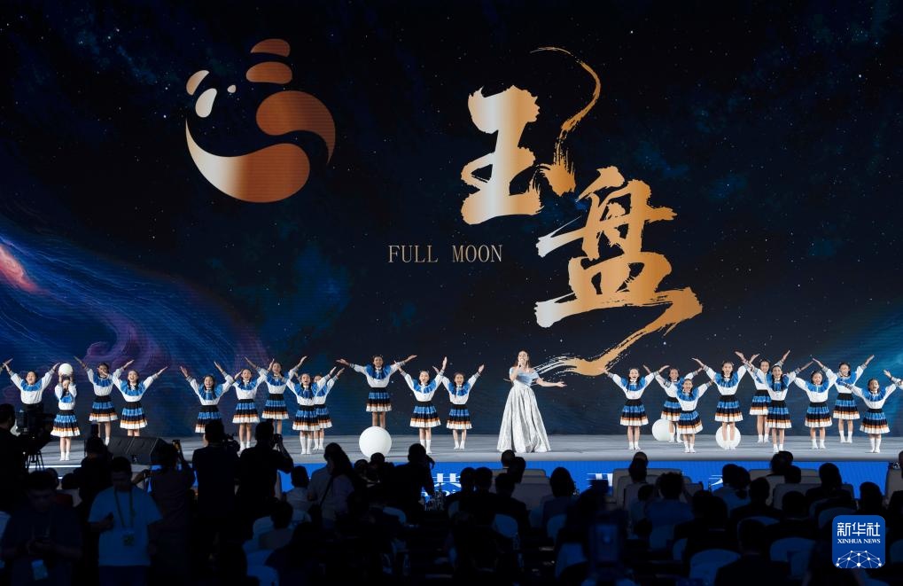 9月13日,在2025金熊猫国际文化论坛开幕现场,希腊歌手埃里尼、大凉山妞妞合唱团、金熊猫少儿艺术团一起演唱《玉盘》。