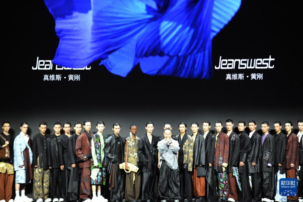 9月13日,设计师黄刚和模特在大秀后谢幕。