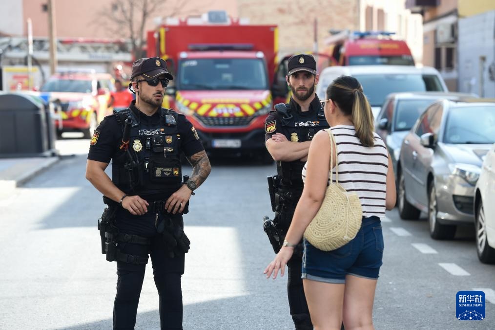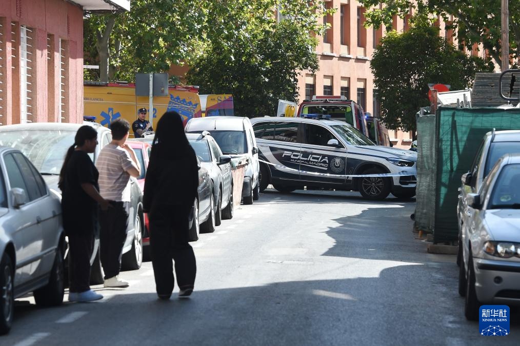 9月13日,在西班牙马德里,警方在爆炸现场附近设立警戒线。