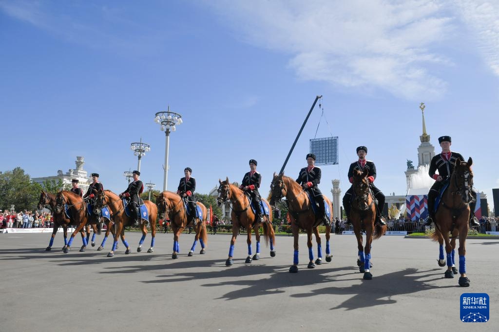 9月13日,骑手在俄罗斯莫斯科的国民经济成就展览馆参加纪念活动。