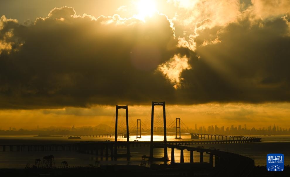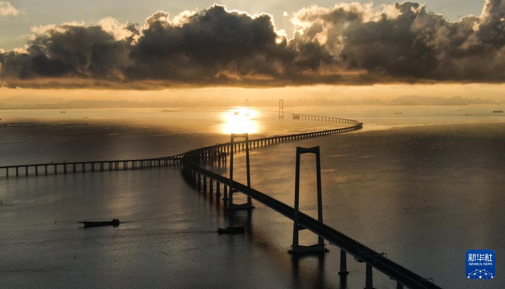 9月14日拍摄的沐浴在晨曦之中的深中通道。