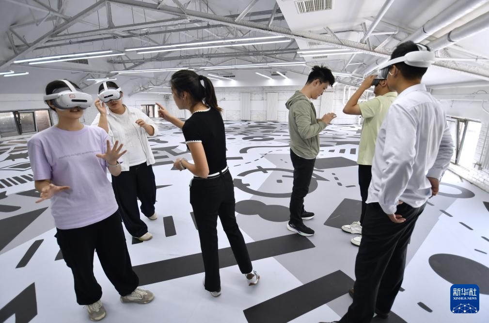 纪家庙双创产业园一家文创企业的青年人在测试VR产品(9月19日摄)。