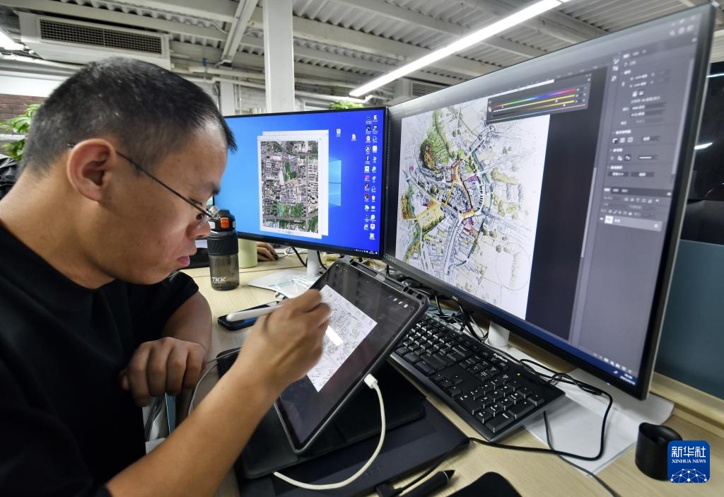 纪家庙双创产业园一家文创公司的青年技术人员在进行文创产品设计(9月19日摄)。