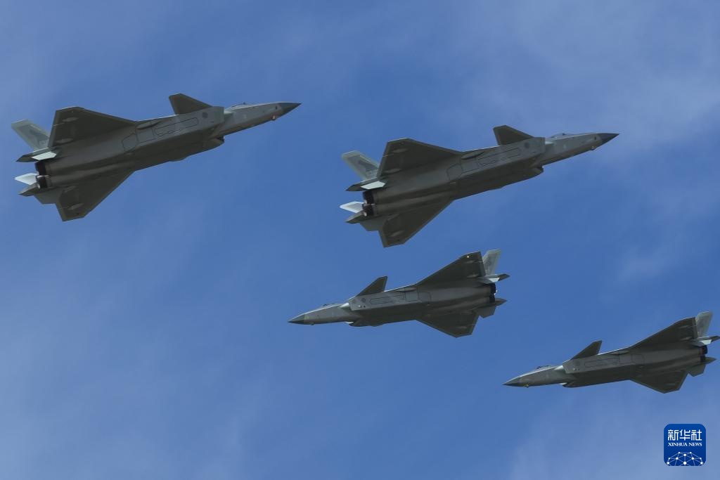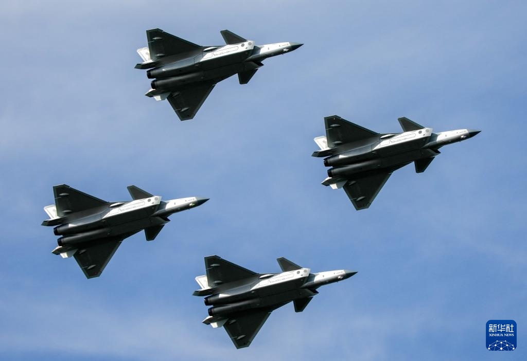 9月19日,歼-20编队进行机动飞行展示。