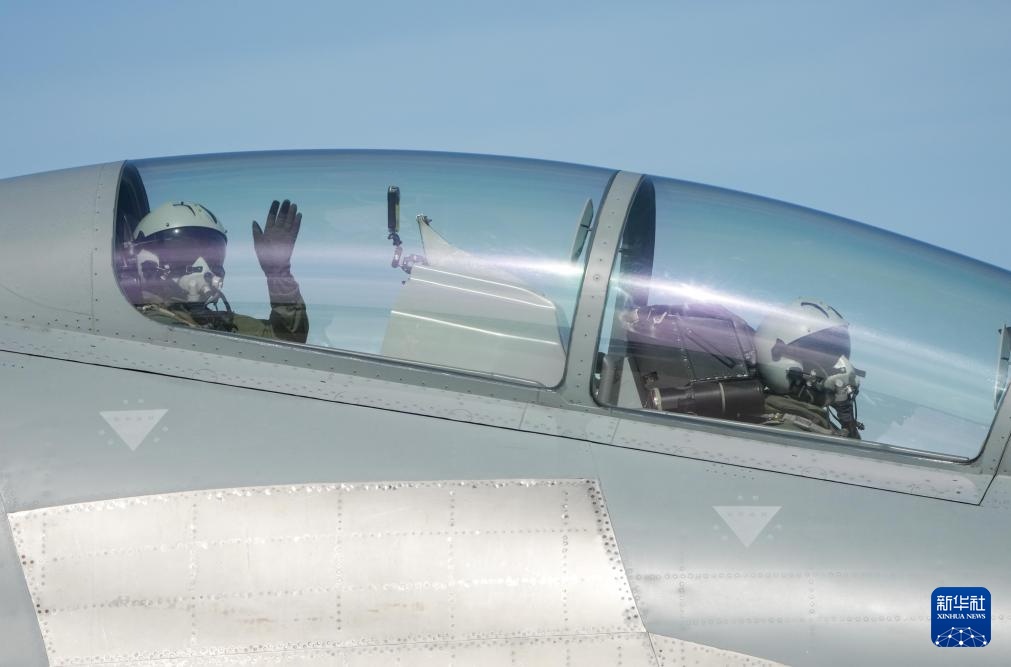 9月19日,歼-16飞行员在完成表演后向观众挥手致意。