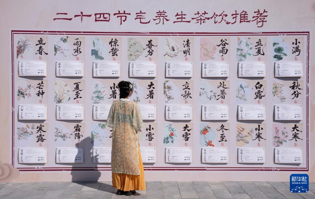 9月19日,一名女孩观看二十四节气养生茶饮推荐展板。