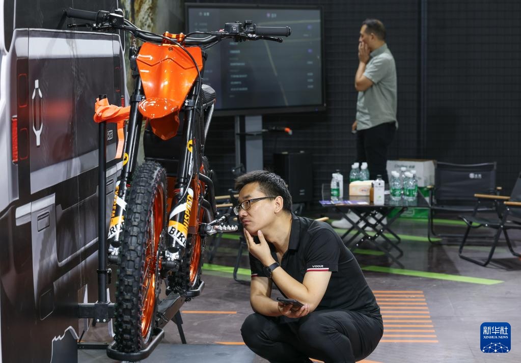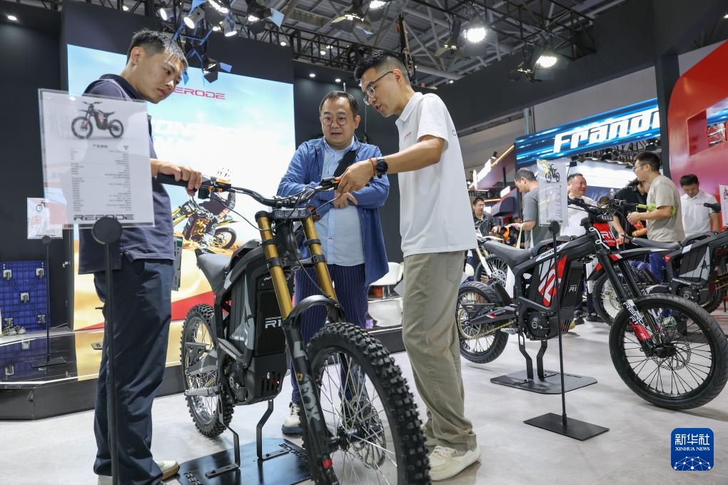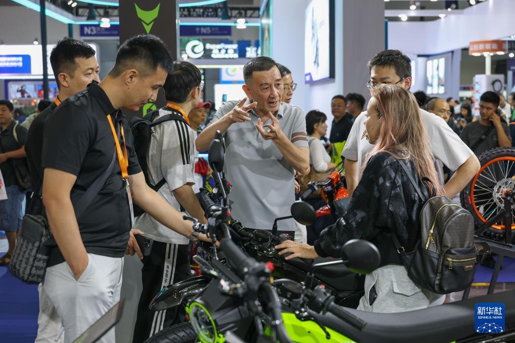 9月19日,观众在摩博会现场了解国产新能源摩托车性能。
