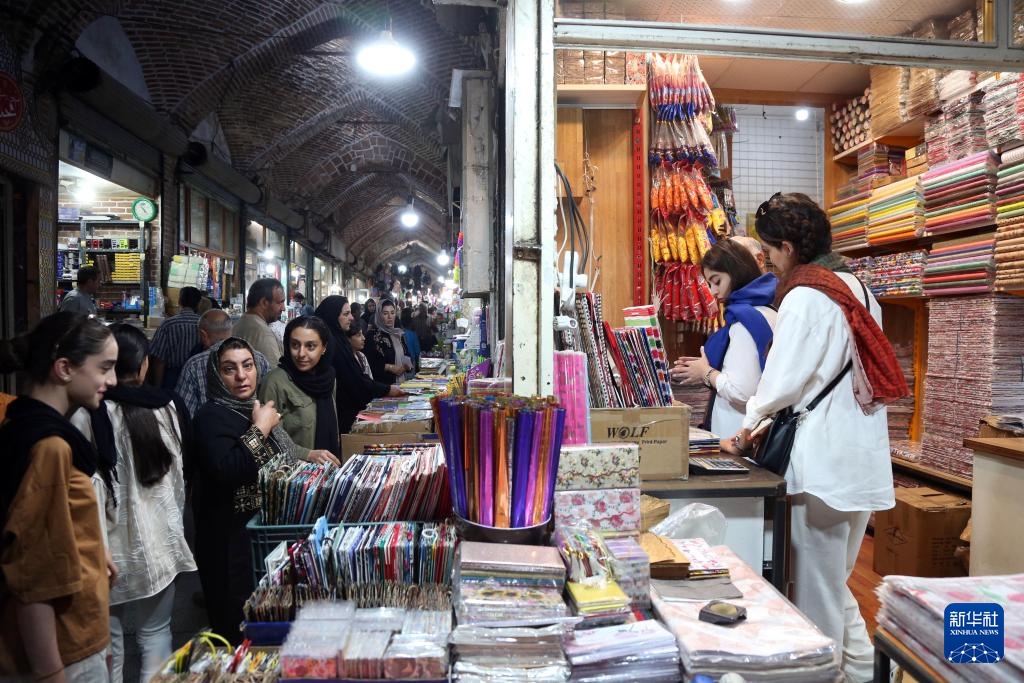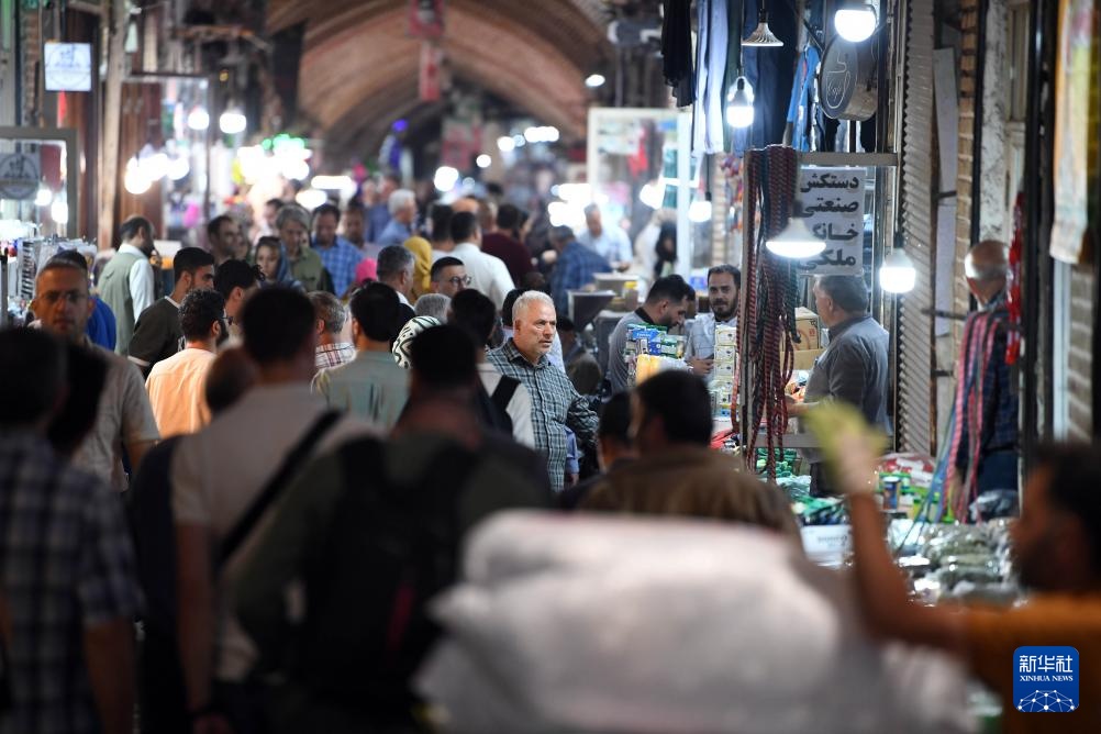 9月17日,人们在伊朗东阿塞拜疆省大不里士大巴扎内购物。