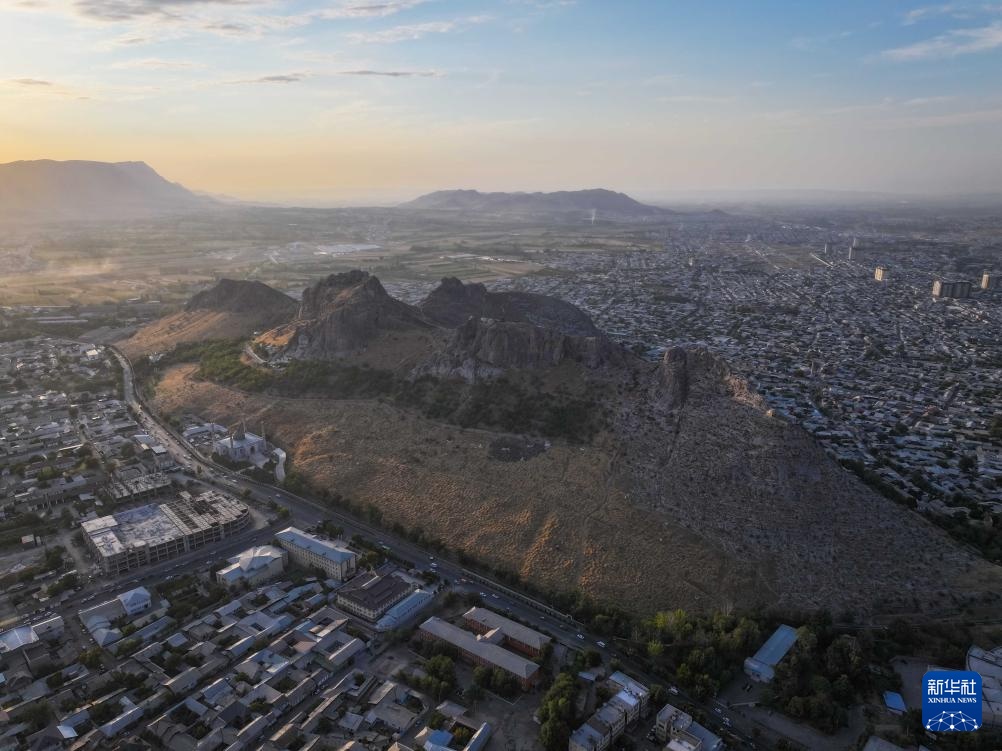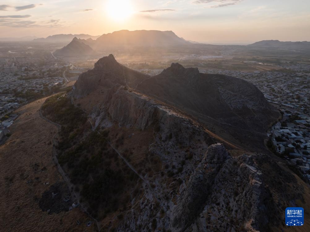 这是9月19日在吉尔吉斯斯坦奥什拍摄的苏莱曼山(无人机照片)。