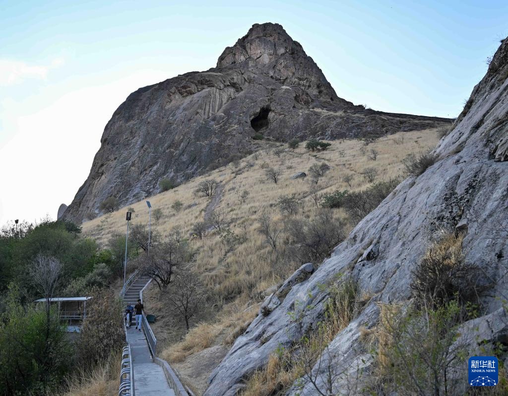 9月19日,在吉尔吉斯斯坦奥什,游客在苏莱曼山游览。