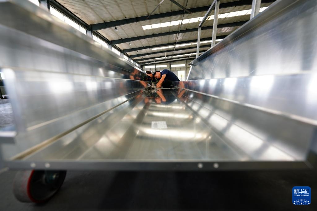 9月20日,河北省邢台市柏乡县一家新型建材生产企业的员工在加工铝板。