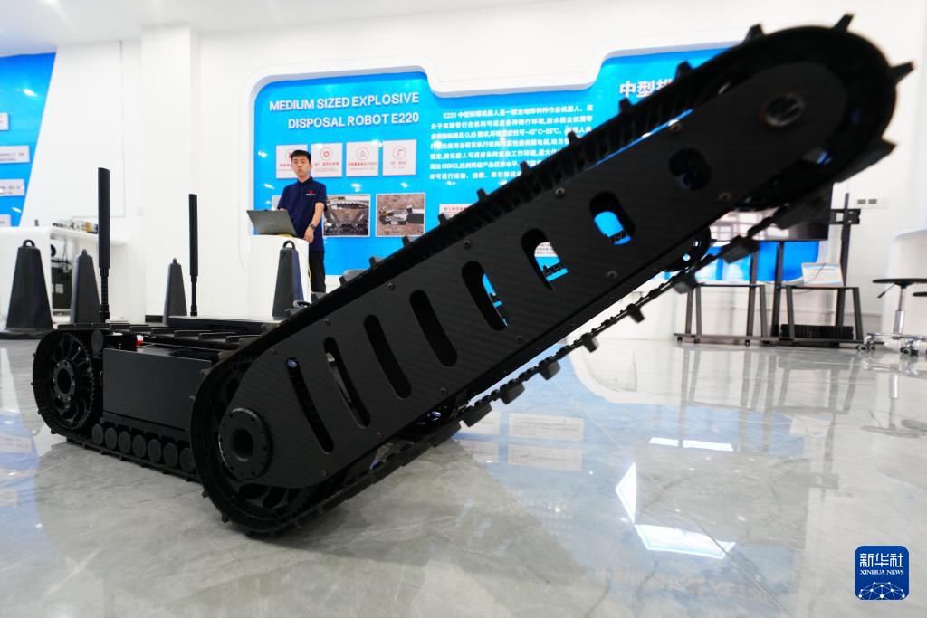 9月20日,河北省邢台市柏乡县一家机器人科技公司的员工在对地震搜索机器人进行自主导航训练。