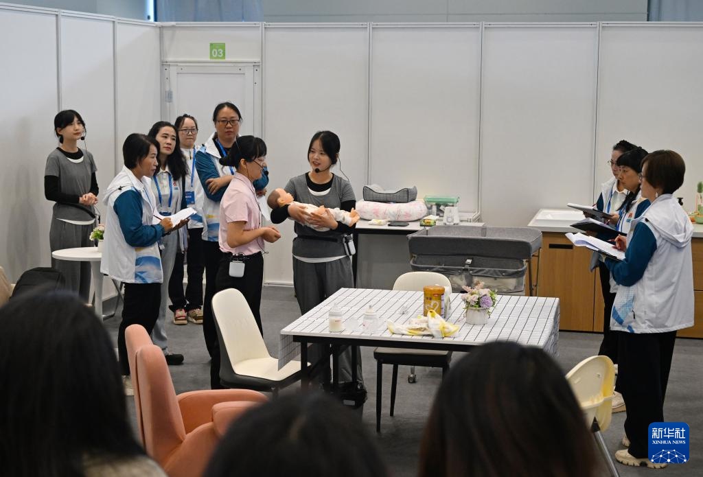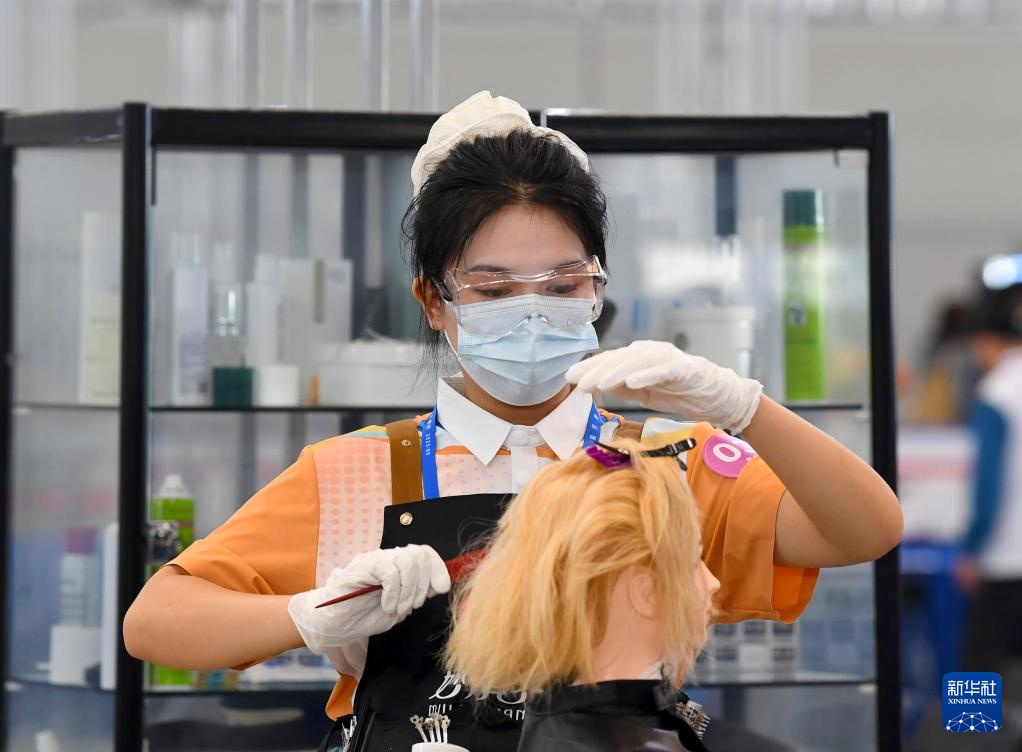 9月20日,裁判员在餐厅服务项目比赛中评判。