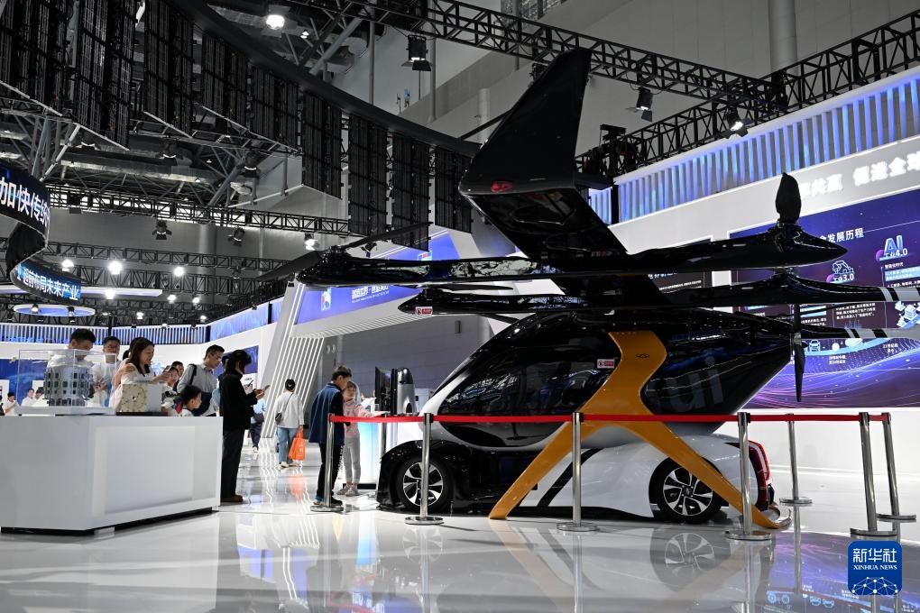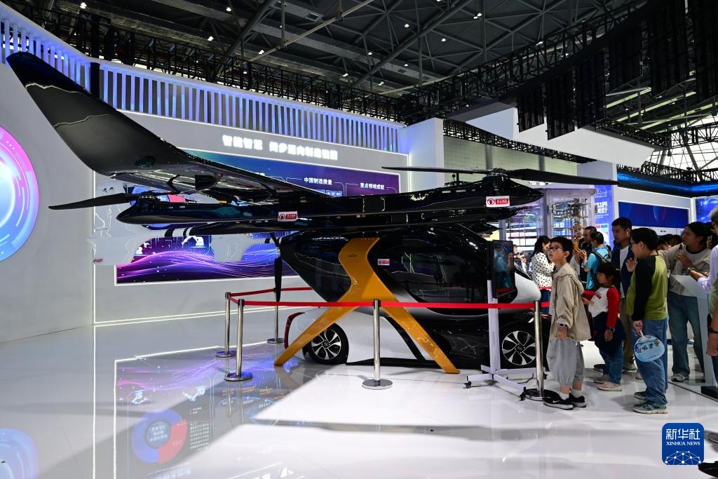 9月20日,观众在2025世界制造业大会上观看一款飞行汽车。