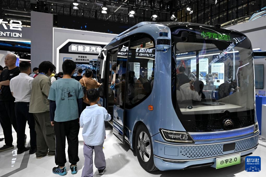 9月20日,观众在2025世界制造业大会上参观体验一款自动驾驶巴士。
