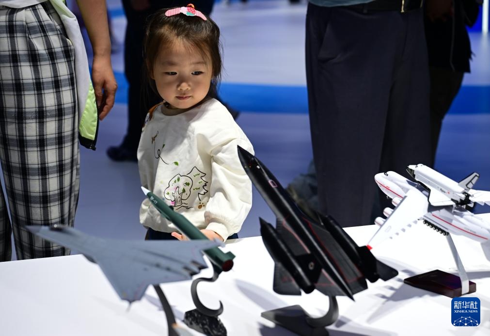 9月20日,小朋友在2025世界制造业大会上观看飞机模型。