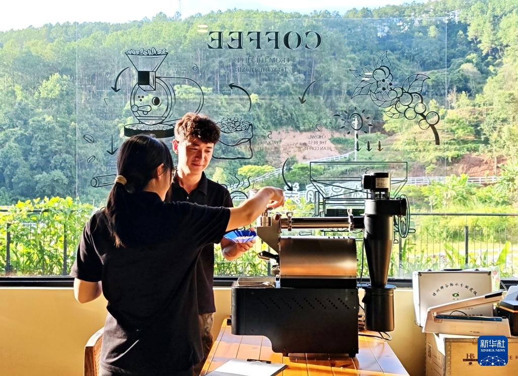 9月20日,游客在普洱市思茅区南屏镇南岛河村白沙坡小组的“美丽星村·有风咖谷”品尝咖啡。