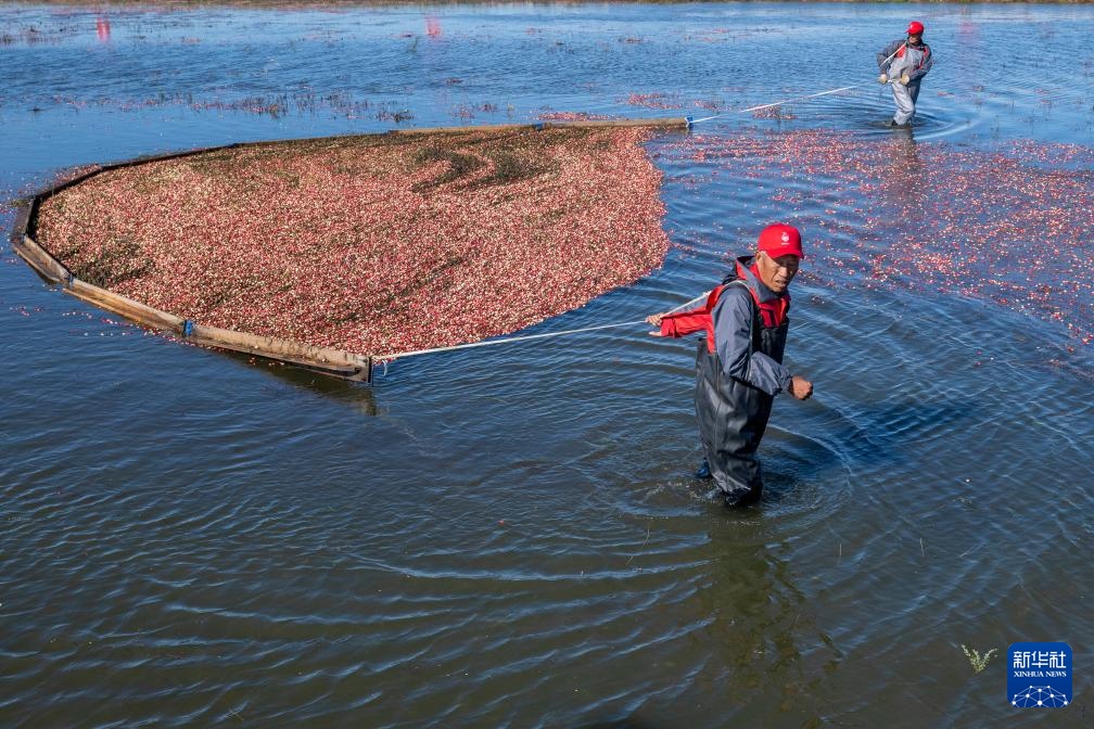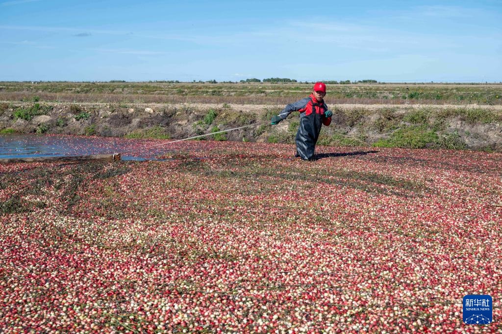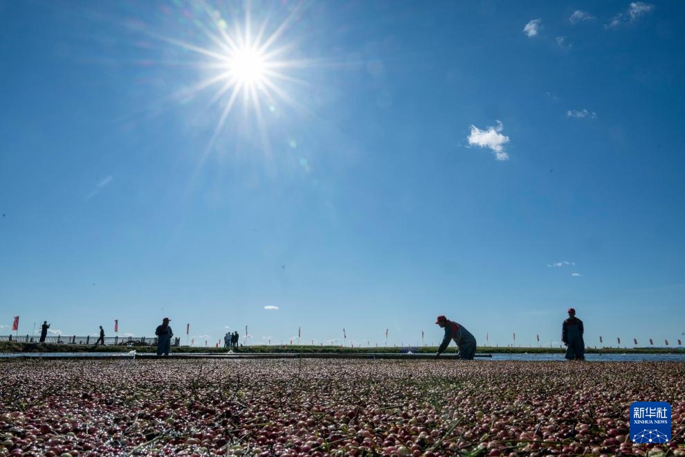 9月21日,“庆农业丰收 享美好生活”蔓越莓丰收节在我国“东极”黑龙江抚远市举行,4200亩的抚远市蔓越莓种植基地迎来采收季。
