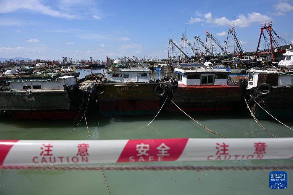 9月23日,在广东阳江市海陵岛闸坡国家中心渔港,登岸出入口已绑上明显标志。