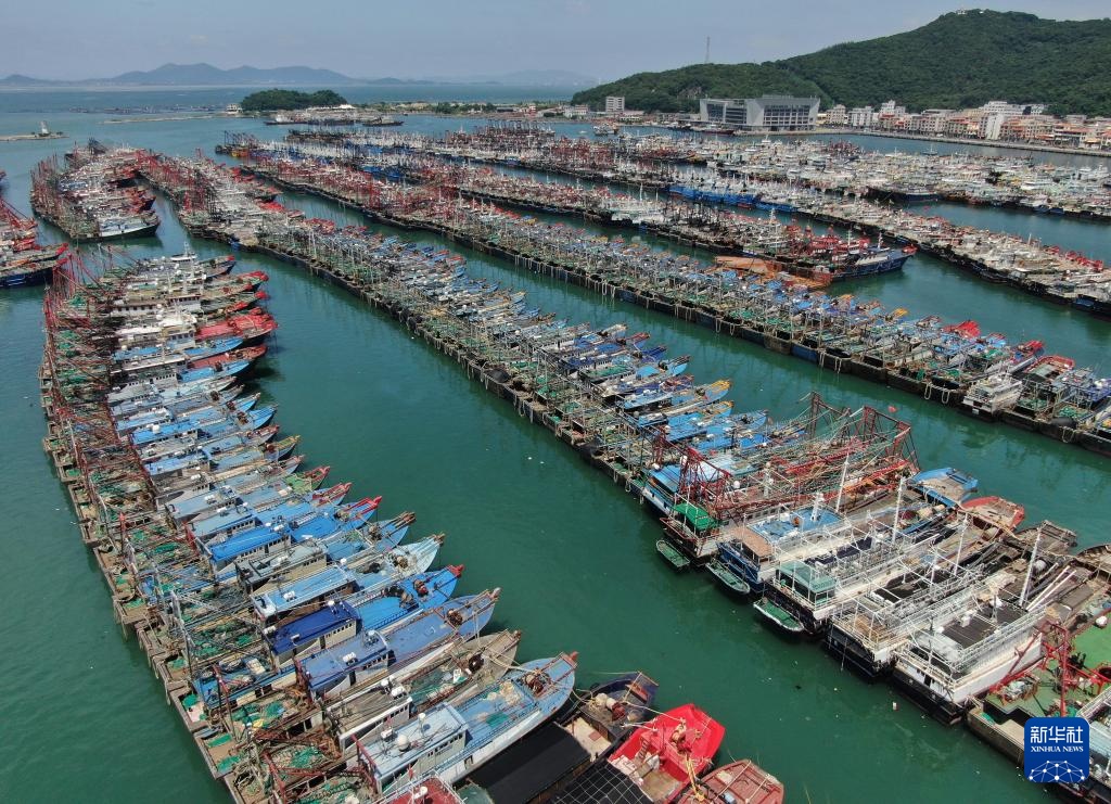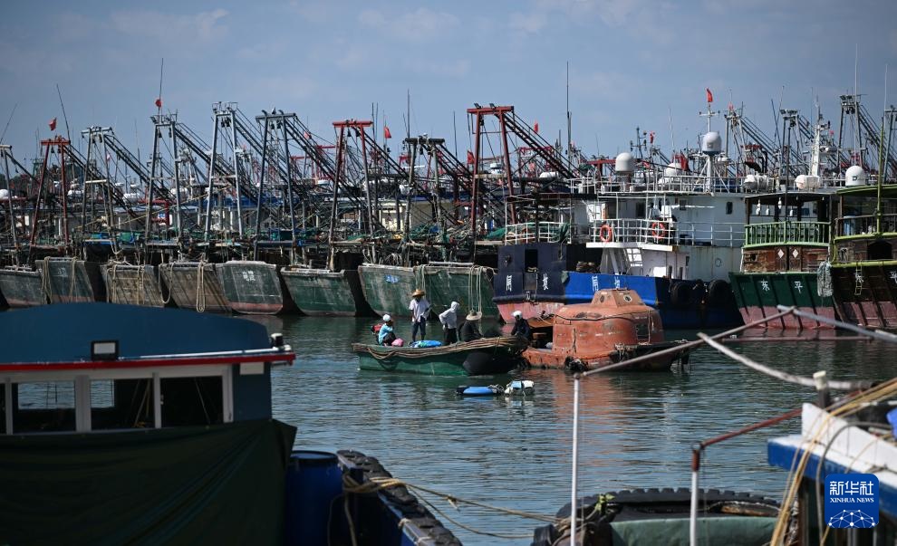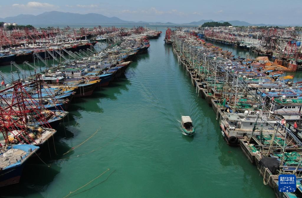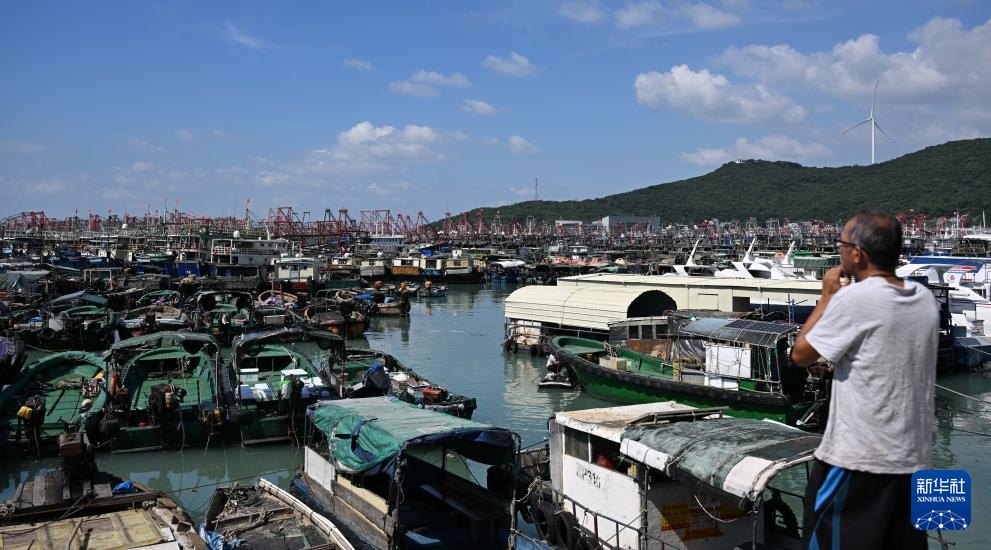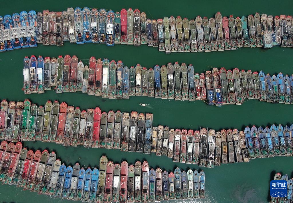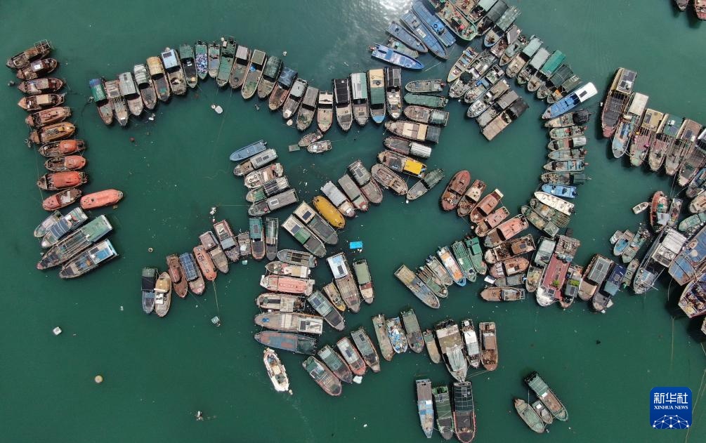 9月23日,在广东阳江市海陵岛闸坡国家中心渔港停满了归港避风的渔船。