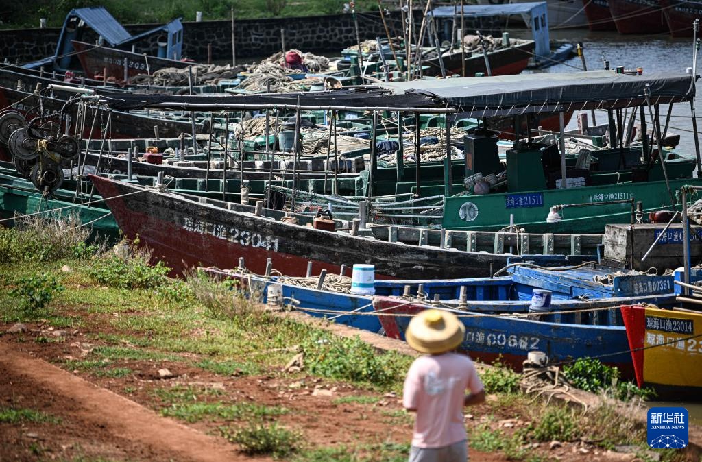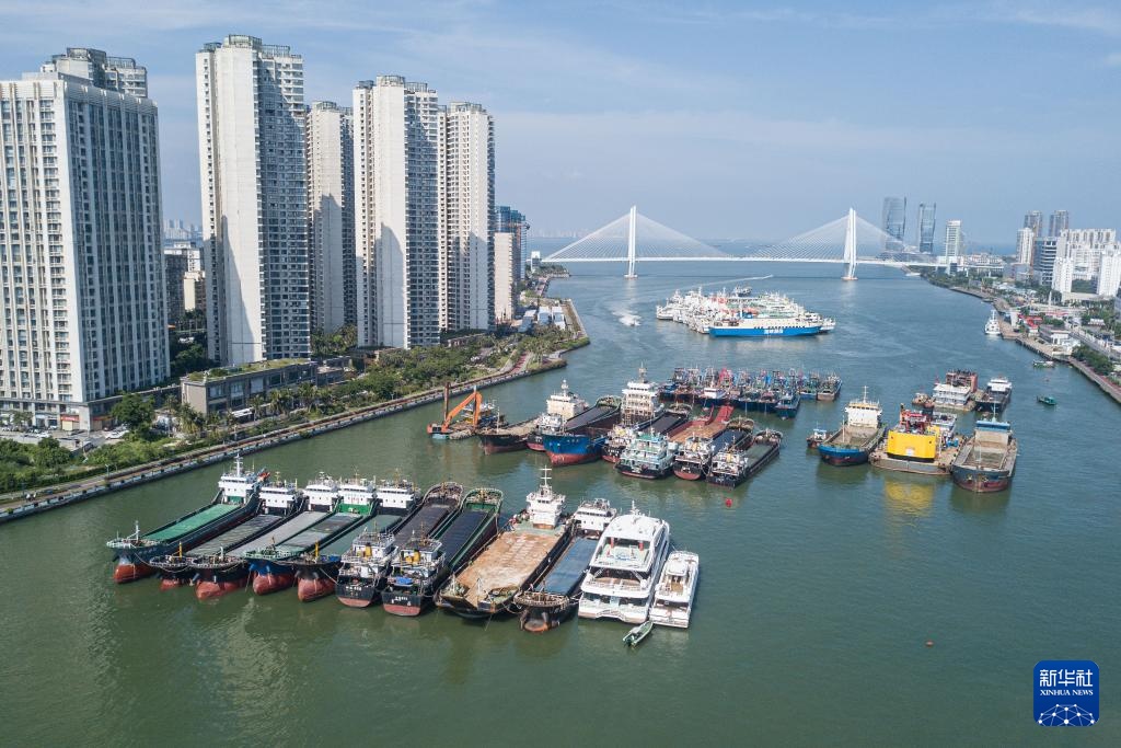 9月23日,船只在海口新港码头停靠避风(无人机照片)。