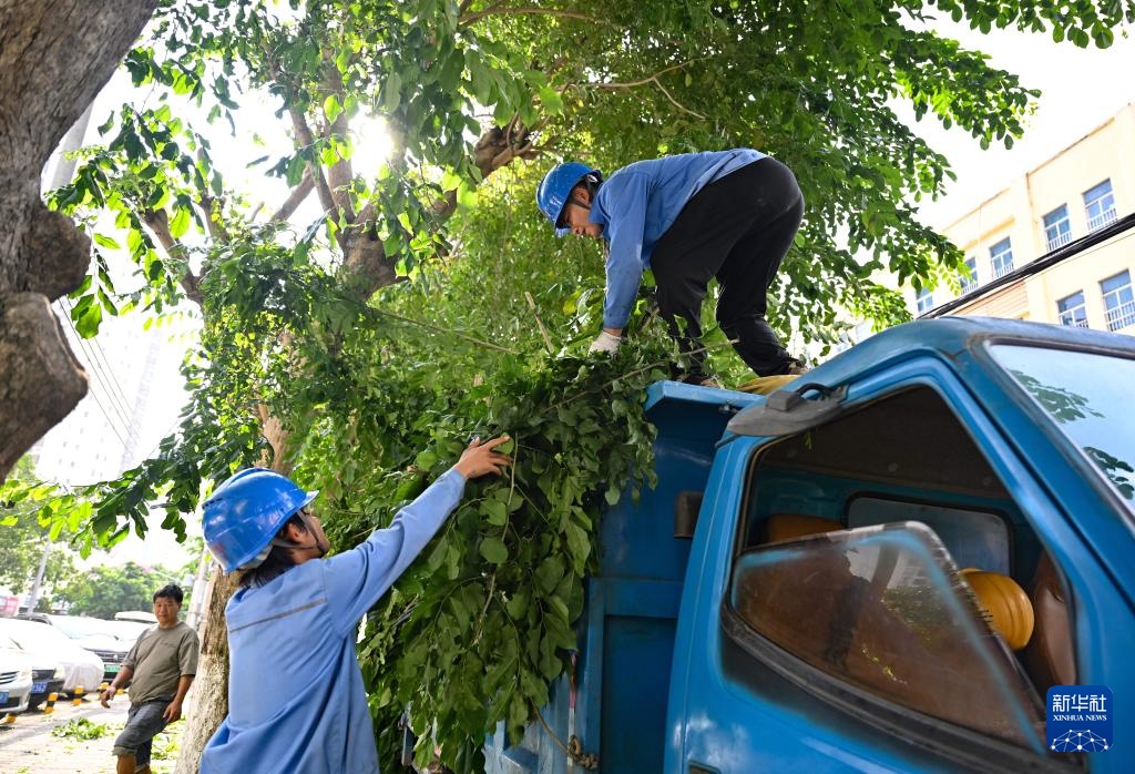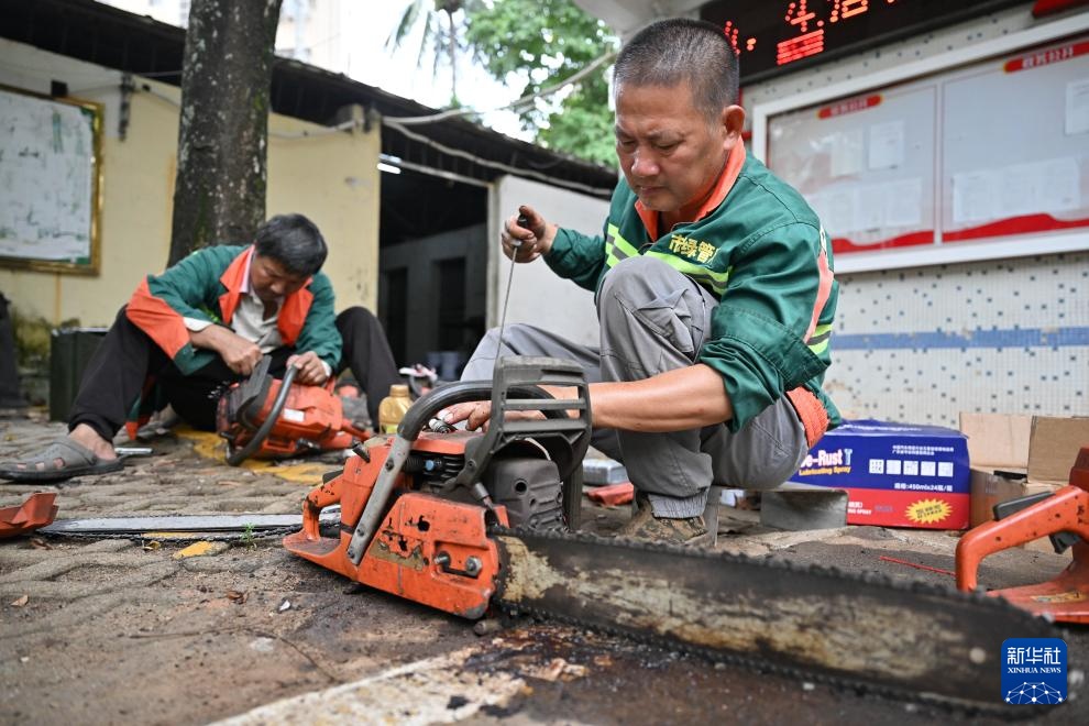 9月23日,海口市公共绿化管理所的工作人员在准备应急物资。