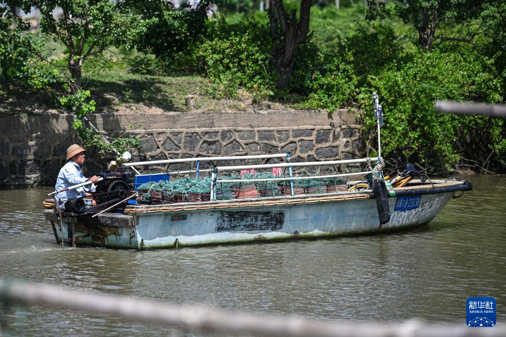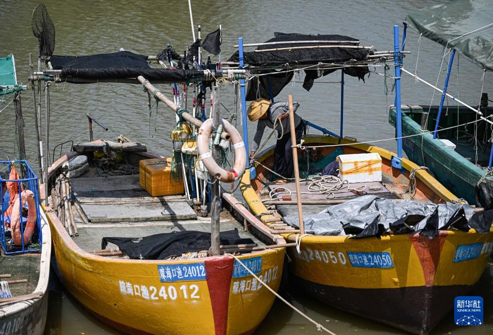 9月23日,渔民在位于海口的南渡江河汊内固定渔船。