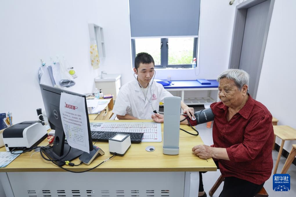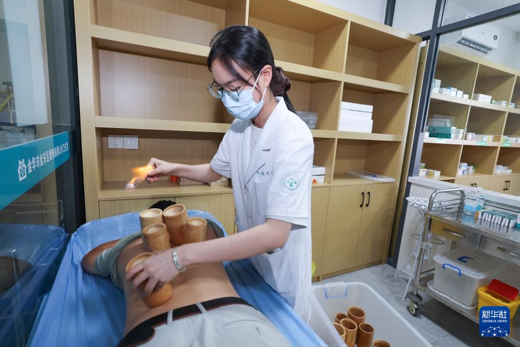 9月23日,定向培养的大学生村医黄晶在金华市金东区塘雅镇横山村卫生室给村民拔火罐。塘雅镇横山村卫生室于2024年10月底建设完工,主要承担横山村1000多村民的基本公共卫生服务、基本医疗服务等。2025年通过“金东区大学生村医定向培养”项目,成功招募到了一名医学专业定向培养生黄晶,在经过为期6个月的专项培养与实习后,开始全面负责村卫生室的日常诊疗工作。