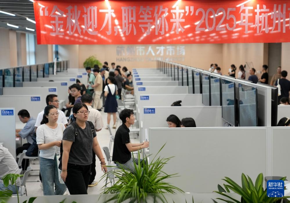 这是“金秋迎才,职等你来”2025年杭州市总工会秋季专场招聘会现场(9月24日摄)。