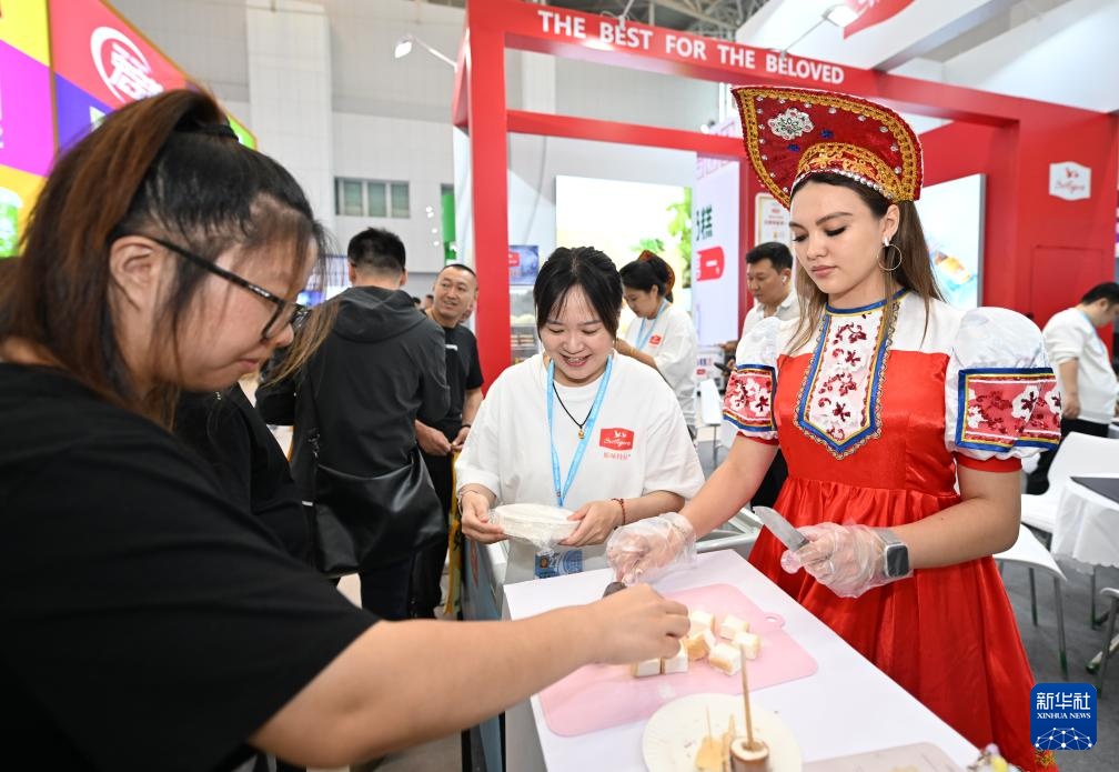 9月24日,在天津梅江国际会展中心,参观者在博览会上试吃冰淇淋。