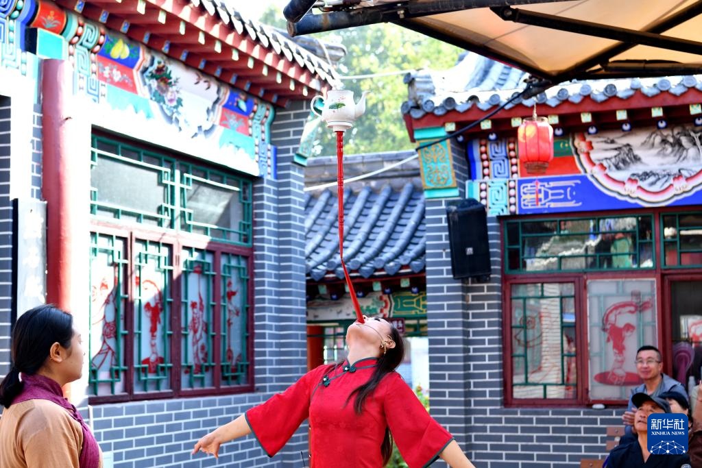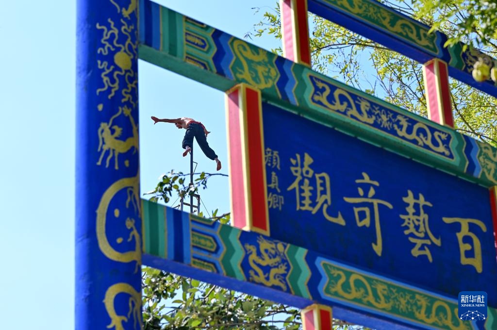 9月25日,杂技艺人在吴桥杂技大世界江湖文化城内表演。