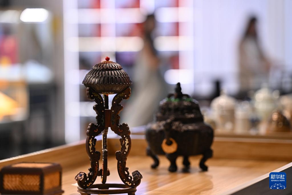 9月24日,福建省仙游县沉香博物馆展示售卖的红木香炉工艺品。