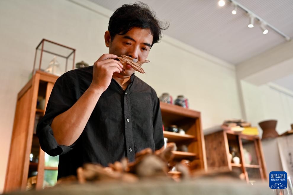 9月24日,福建省仙游县制香艺人陈斌在挑选用于制作天然香的沉香原料。
