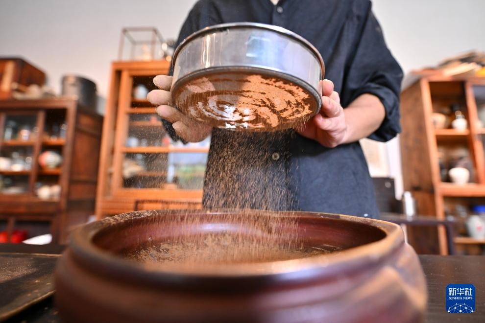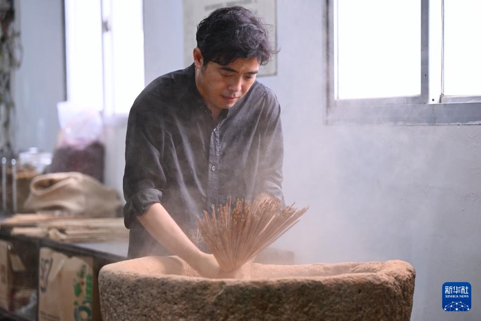 9月24日,福建省仙游县制香艺人陈斌在手工制作天然香。