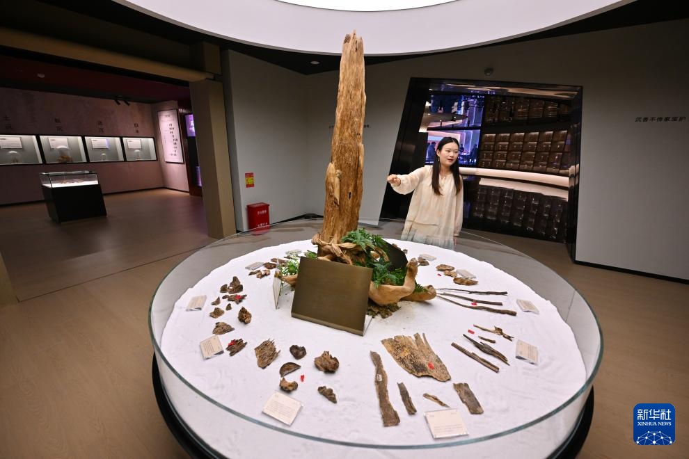 9月24日,在福建省仙游县沉香博物馆,工作人员介绍用于生产天然香的沉香原料。